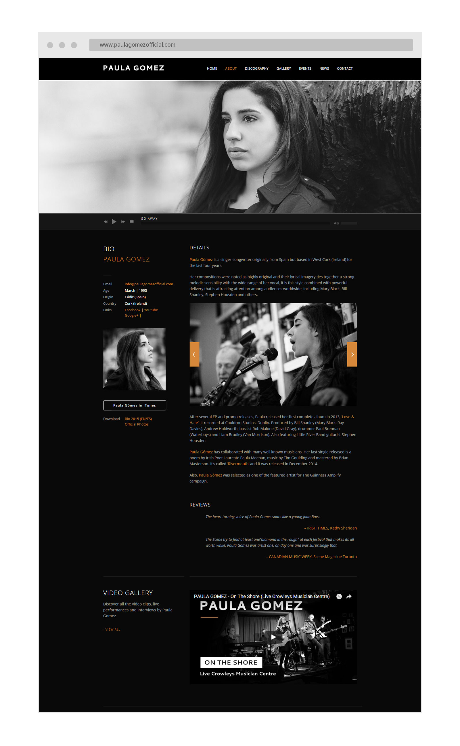 Paula Gómez es una cantante emergente, gaditana pero afincada en Irlanda, que necesitaba darse a conocer para relanzar su carrera musical después de haber sacado su primer disco. Para ello, primero se realizó su primer videoclip oficial que diera a conocer su estilo y personalidad artística. Posteriormente, para tener mayor visibilidad en internet, se creó su página web, concebida como plataforma musical que mostrará su personalidad y talento.